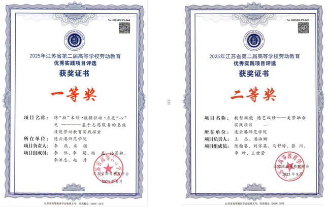近日,江苏省高等教育学会公布了第二届高等学校劳动教育优秀实践项目评选结果,我校2个项目入选。本领·数据驱动·点亮——基于志愿服务的急救技能劳动教育实践探索荣获一等奖,数智赋能德艺双修——美劳融合实践项目荣获二等奖。
